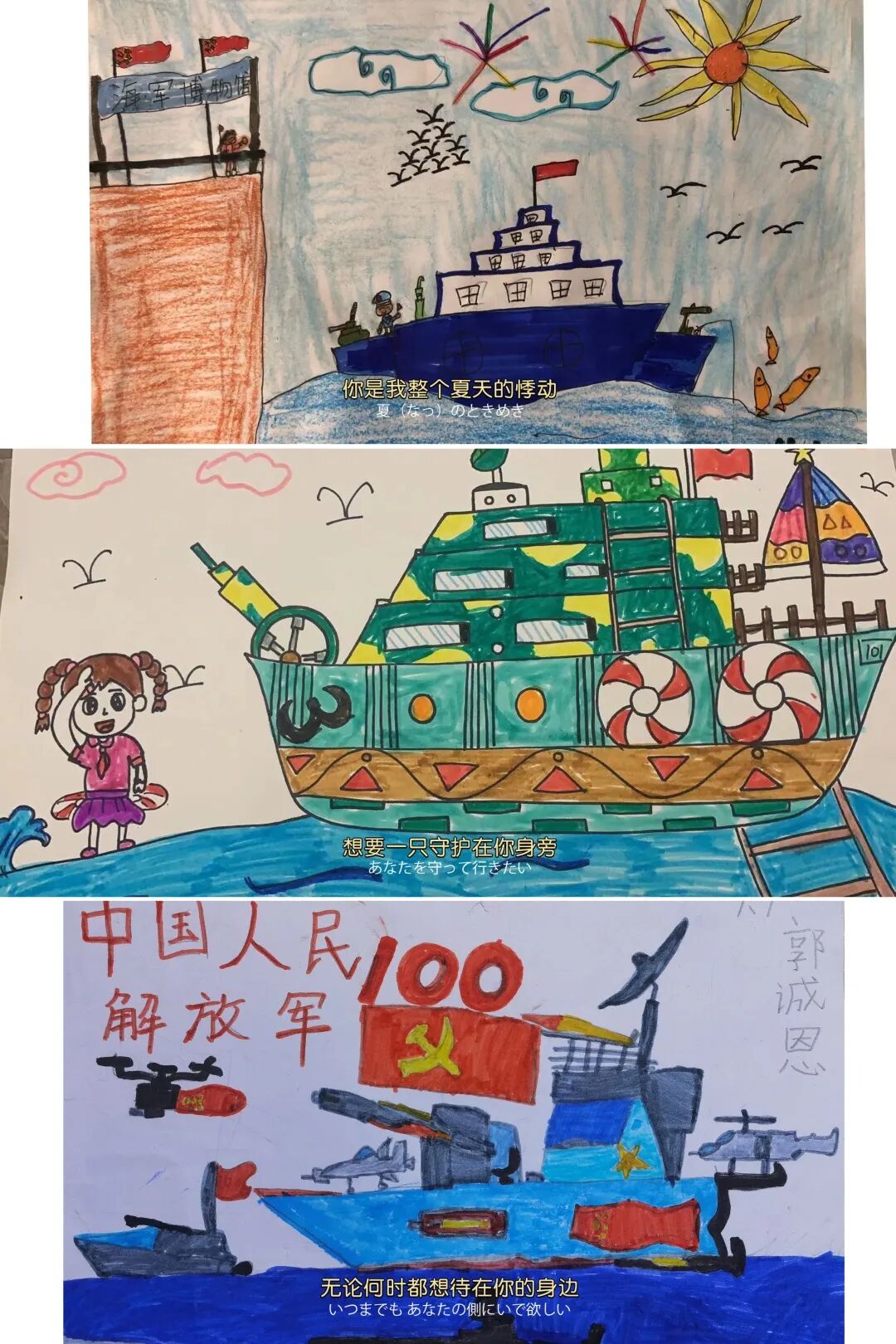 張晨陽:我更加了解海軍的發(fā)展歷史,也知道了現(xiàn)在的幸福生活來之不易。我以后要珍惜每一分鐘學(xué)習(xí)的時間,努力學(xué)好文化知識。長大了,我也要做一名光榮的解放軍,保衛(wèi)祖國。