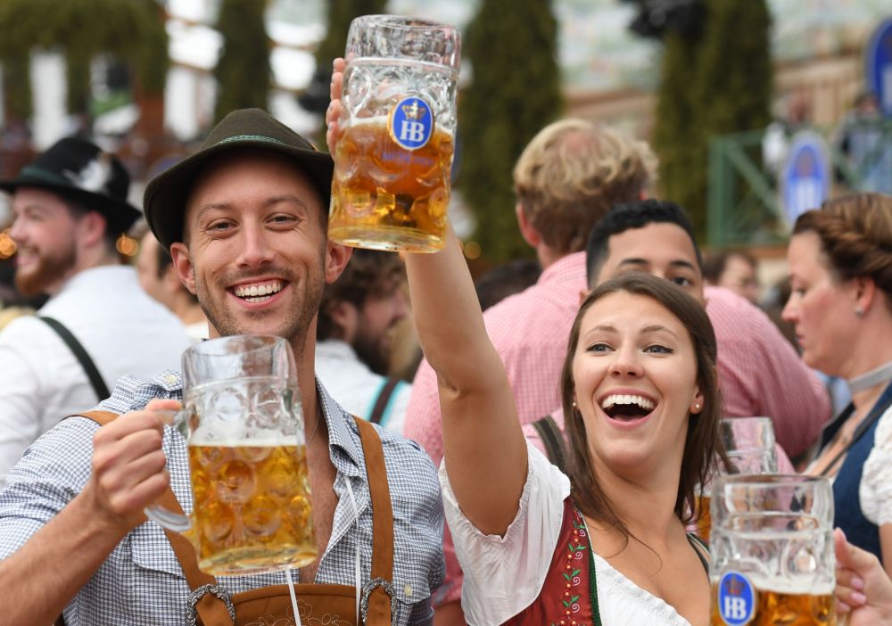 2019年9月21日,人們在第186屆德國慕尼黑啤酒節上享用啤酒。(新華社記者逯陽攝)