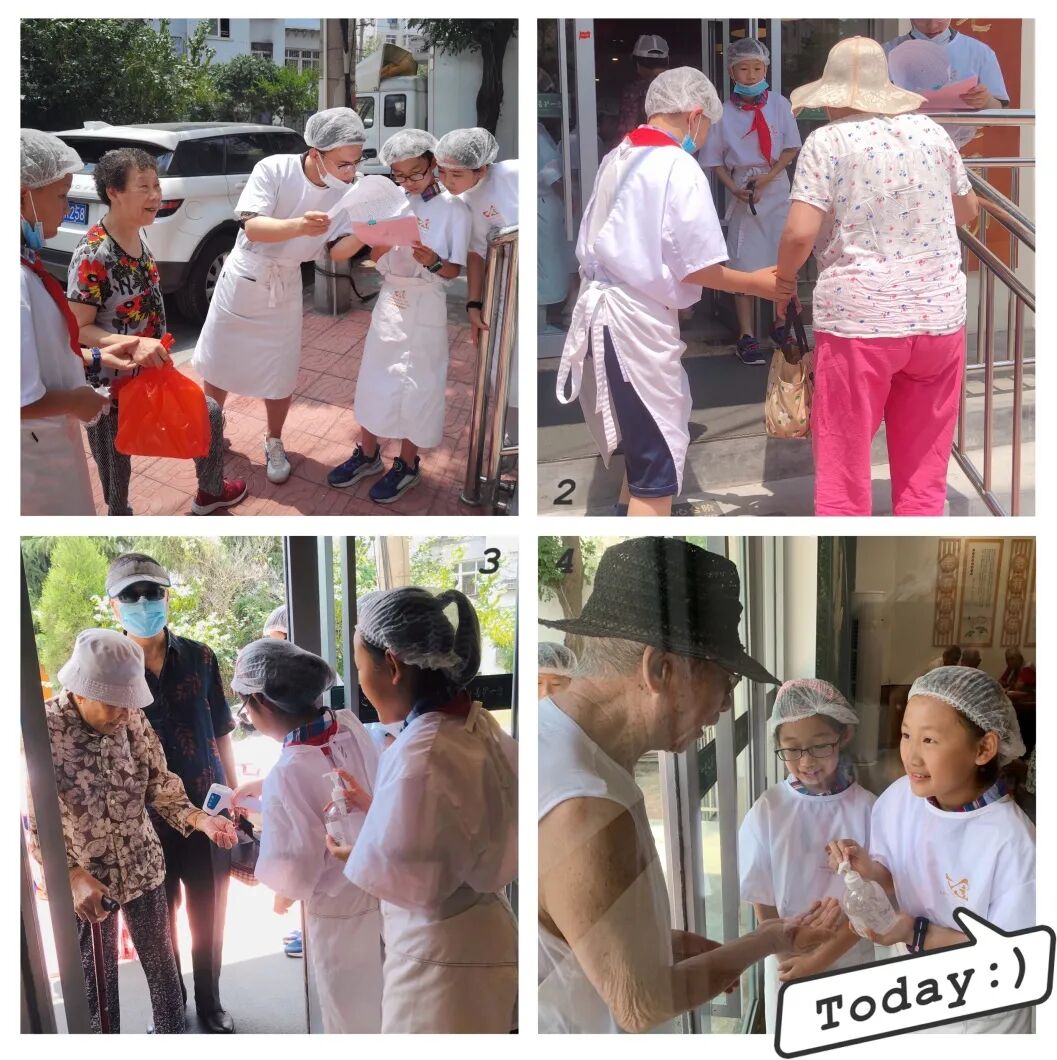 第一次當小義工,雖然我們只能在前廳打掃衛生,還不能到后廚去幫忙,但是我還是感到非常自豪。尤其是我們站在門口迎接爺爺奶奶時,他們對我們豎起大拇指,不停地夸獎,我的干勁兒更足了。尊敬老人,心懷感恩,我們每個人都應該做力所能及的事情去幫助別人!