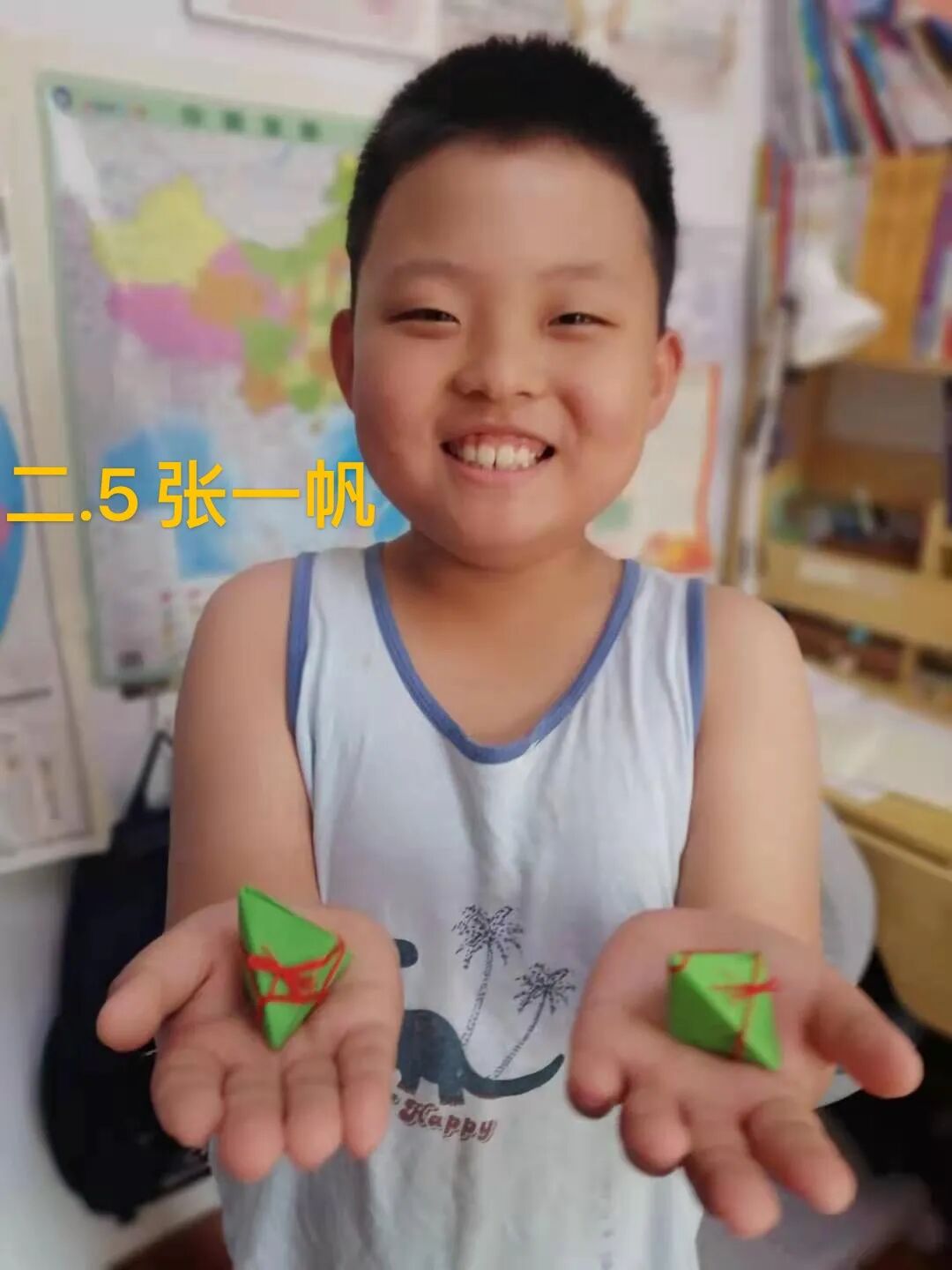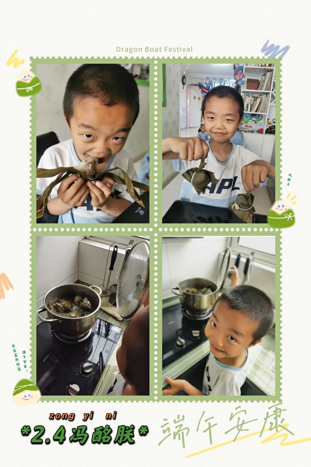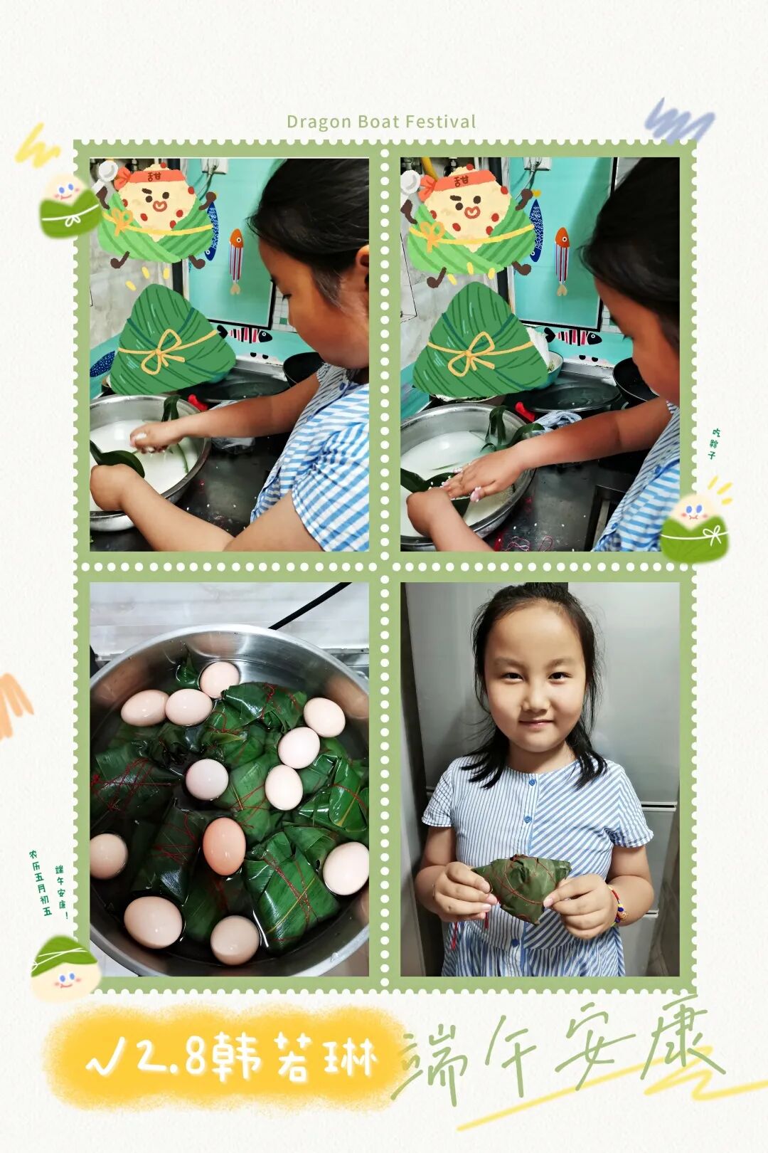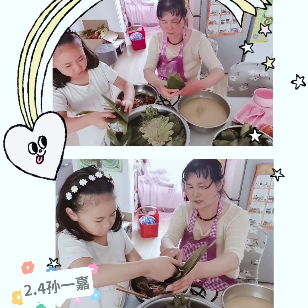 當然,我們最熟悉的還屬吃粽子啦!端午假期,青島大棗園小學二年級中隊的隊員們在節日的氣氛中,紛紛伸出小手,拿起青青的粽葉,放進白白的糯米,再包裹上紅紅的小棗,包成一個個形態各異的小粽子。在包粽子的過程里既感受到節日的氣氛,又體會到勞動的樂趣,看,一張張小臉上都洋溢著幸福的笑容呢!