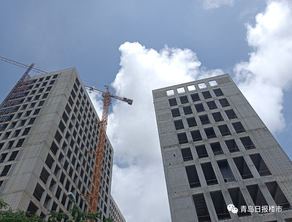 7月20日,青島市嶗山區張村河板塊一項目施工現場,據了解,該片區周邊的住宅房價已在每平方米35000元至45000元。李鵬飛 攝