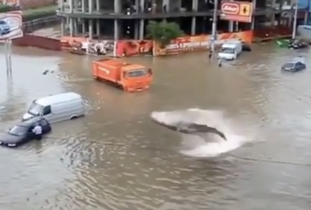 20日晚間,社交媒體上流傳一則4秒鐘的短視頻,顯示一條巨大的魚狀物體在街區(qū)洪水中翻騰,據(jù)稱是鄭州“滎陽海洋館被沖破,海洋館鯊魚逃出來”。