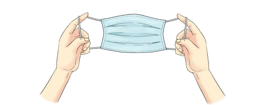 戴口罩前,請將口罩鼻夾側朝上、深色面朝外。如口罩無顏色區別,可根據口罩皺褶判斷,皺褶處向下為外。