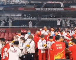 國乒隊員頑強拼搏、團結一致的精神