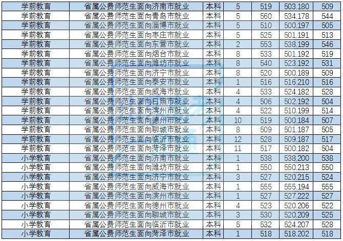 錄取最低分排在后三名的都來自于學前教育專業,分別是520.190分(面向菏澤市就業)、520.193分(面向聊城就業)、520.198分(面向濟寧就業)。