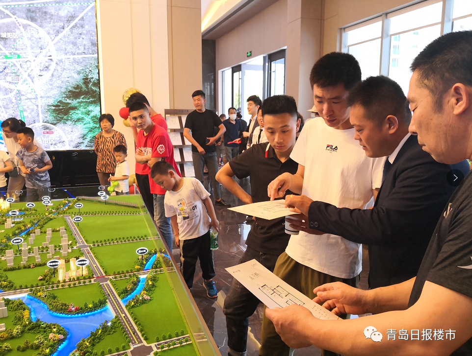 ■6月19日,城陽區卓越中寰樓盤營銷中心,消費者正在了解項目信息。李鵬飛 攝
