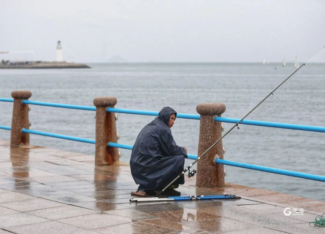 男子雨中獨釣。青島日報/觀海新聞記者 韓星