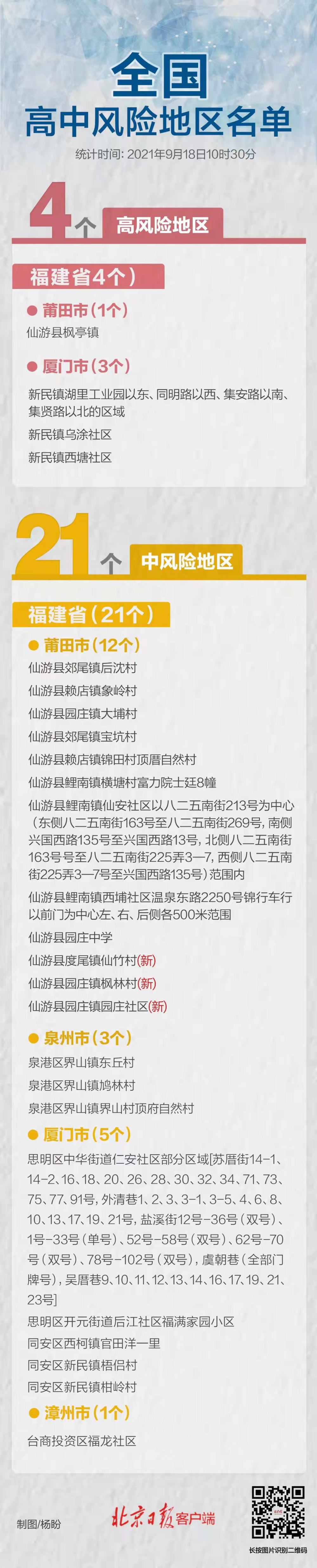 目前,全國(guó)共有高中風(fēng)險(xiǎn)區(qū)4+21個(gè),都在福建省。