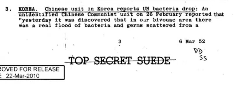 杰弗里·凱說,中情局這些文件來自美國武裝部隊安全局獲取并翻譯分析的中國和朝鮮通信。文件顯示,在對美方竊取情報手段毫不知情的情況下,中朝兩軍內部曾通報過遭細菌戰打擊的實際情況。