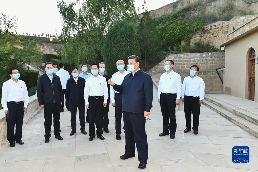 2021年9月13日至14日,中共中央總書記、國家主席、中央軍委主席習近平在陜西省榆林市考察。這是13日下午,習近平在米脂縣楊家溝革命舊址考察。新華社記者 謝環馳/攝