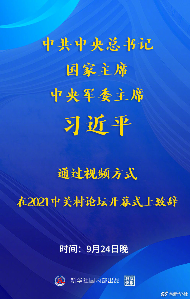【權(quán)威快報(bào) | 習(xí)近平以視頻方式在2021中關(guān)村論壇開(kāi)幕式上致辭】2021中關(guān)村論壇開(kāi)幕式于9月24日晚在北京舉行。中共中央總書(shū)記、國(guó)家主席、中央軍委主席習(xí)近平通過(guò)視頻方式在開(kāi)幕式上致辭。