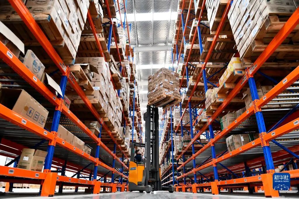 2020年11月21日,在臨沂商谷羅濱遜智慧物流園1號云倉,工作人員在取貨。新華社記者 郭緒雷 攝