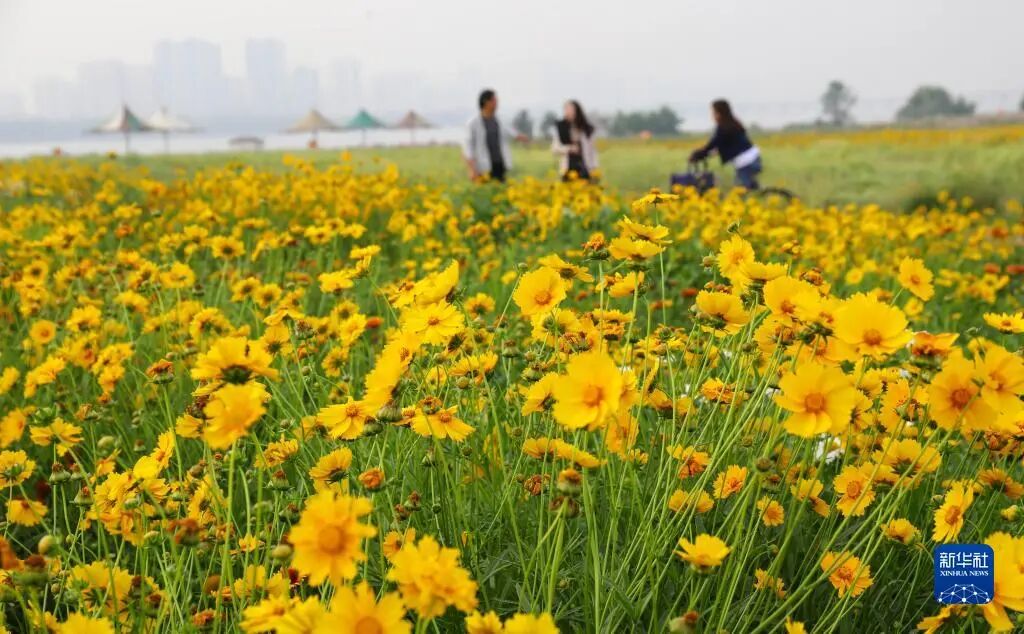 2020年6月,市民在臨沂市濱河景區三河口花海游玩。這里曾是野草叢生的河灘,后被打造成城市花海景觀。新華社發(許傳寶 攝)