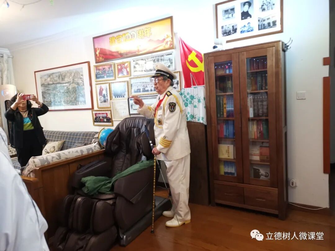 少年強,則國強。同學們認真傾聽于敦爺爺講述革命故事、海戰經歷。個體與國家命運從來都是緊密交織的。革命前輩的故事,衍連起來就是中華民族波瀾壯闊的發展史。于爺爺今年已有87歲高齡,出生在山東省平度市的一個農村家庭,14歲參軍,曾參加過淮海戰役,渡江戰役等重要戰爭。擔任過海軍某巡邏艇大隊槍炮兵和水雷班長、海軍護衛艦某大隊隊長,海軍某基地副司令員兼后勤部長,他從槍林彈雨中一路走來,戎馬一生,為新中國的建立和發展立下了赫赫戰功。一見到孩子們,于爺爺便身姿挺拔,精神矍鑠,聲音鏗鏘有力,講了許多在戰爭中浴血奮戰死里逃生的故事,并給同學們提出兩個問題“你心中的軍人是什么樣子”“你長大以后想成為什么樣的人”。最后,十五名學生代表王星宇、臧冠祺、肖靖雯、曲展飛、隋怡寧、劉筱彤、李宇軒、 亓冠凱、趙婧妤、劉佳桐、敖明佳、陳智謙、張子晗、左婉彤、郝宗銳來到于敦全爺爺的家中聆聽教誨,聽老一輩革命家進一步講述艱苦卓絕的革命奮斗史。