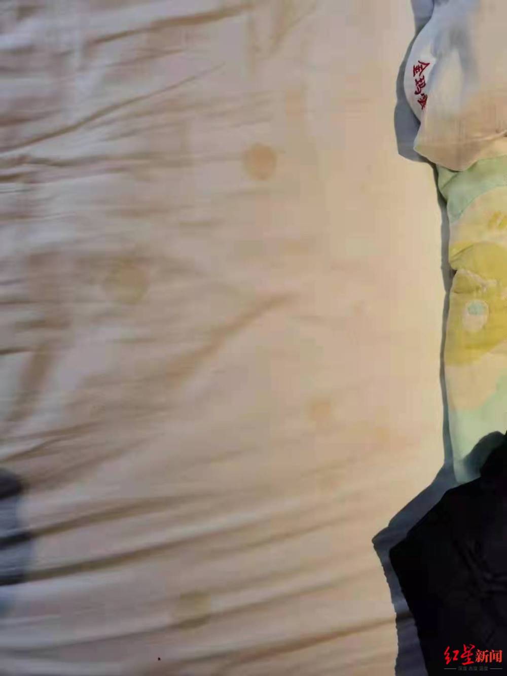 床上很多污漬。