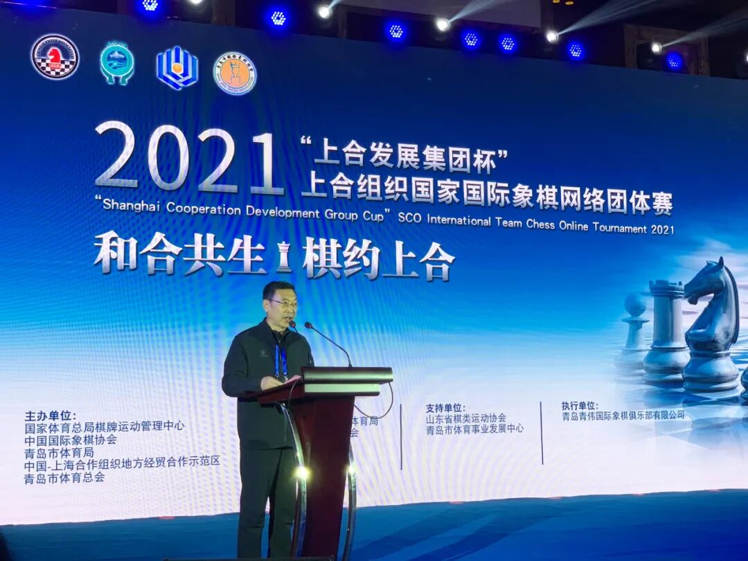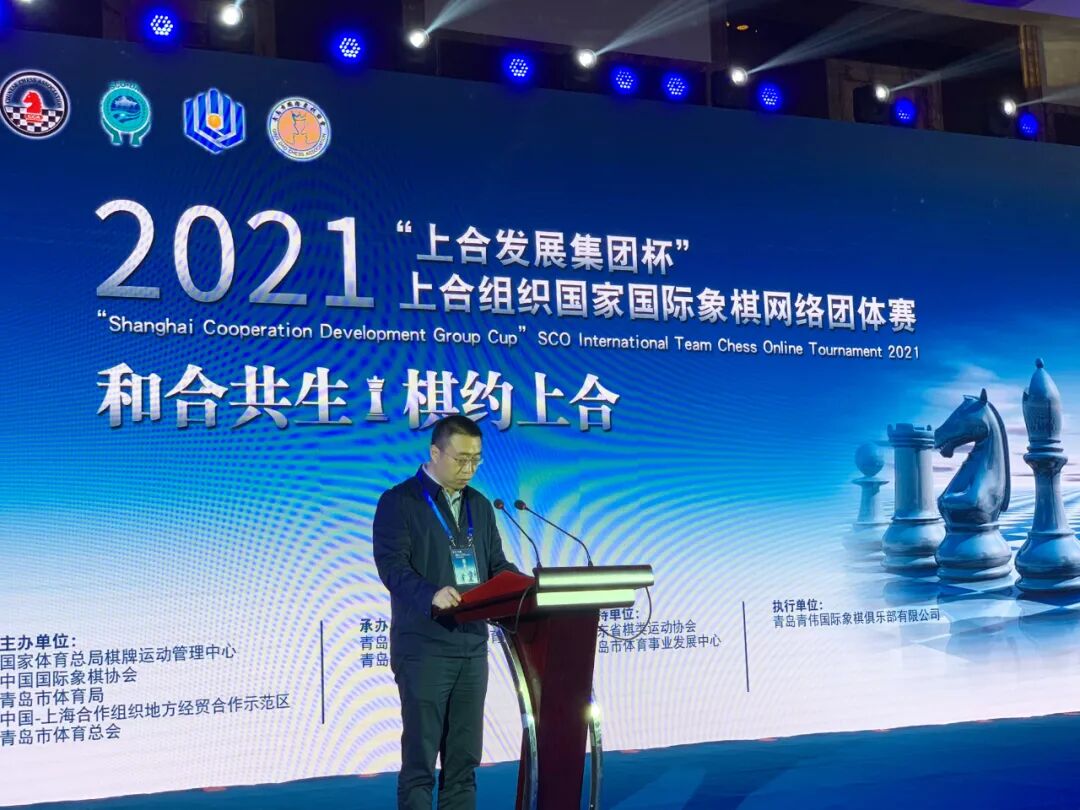 青島市體育局黨組成員,青島市體育總會專職副主席李國利致辭時表示青島將敞開時尚體育對外開放的大門,打通體育事業內外發展雙循環,以'大體育’觀推動形成協同發展的新格局。希望我們一起共同努力把上合組織國家國際象棋比賽打造成為一項固定的體育運動交流精品賽事。