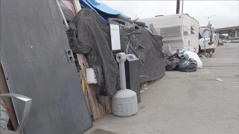 洛杉磯中心城區,即便是道路中間的一小塊綠地也有增加的帳篷。