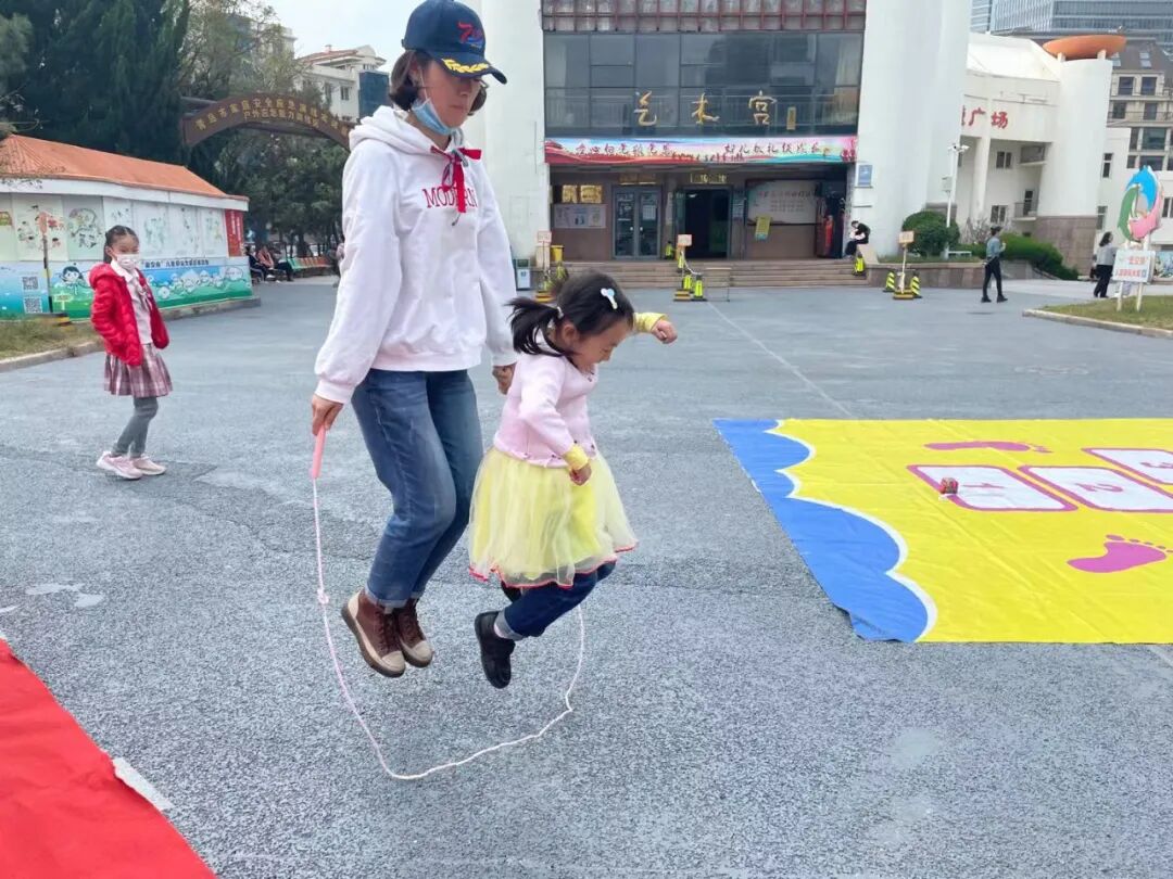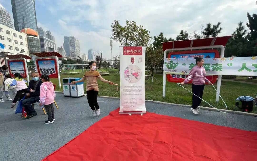 2021年10月24日上午,“百年建黨史 百種老游戲”親子體驗游戲集市 第三期 在青島市婦女兒童活動中心藝術宮門前熱鬧開場。