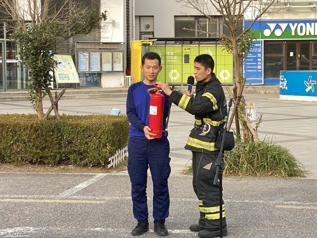 1.消防隊(duì)員介紹滅火器的使用方法,中心消防應(yīng)急分隊(duì)進(jìn)行滅火實(shí)戰(zhàn)演練;