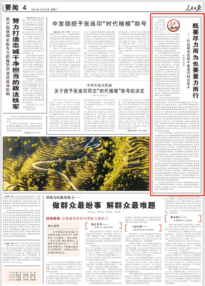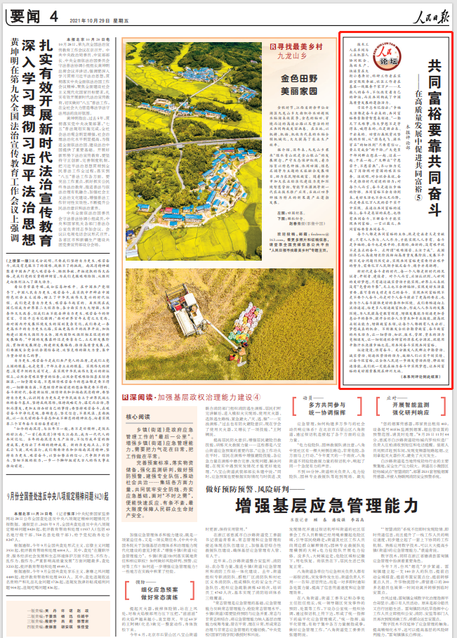 每個人都是共同富裕的主體,既是受益者又是貢獻者,只有人人參與、人人盡力,才能實現人人享有。
