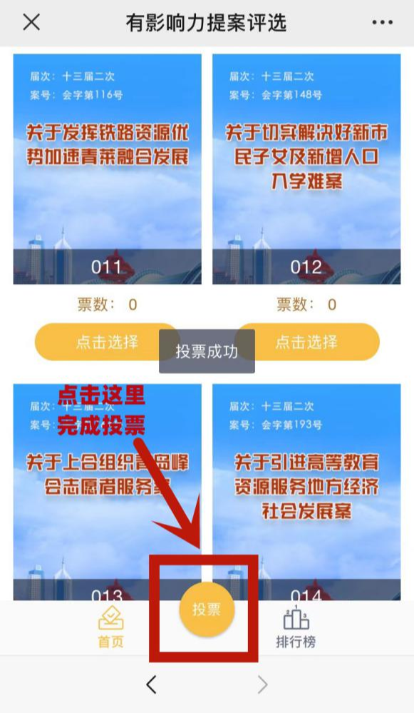 選擇完畢后,請點擊頁面下方的“投票”,確認提交。