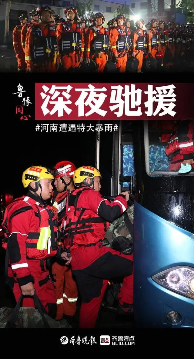 △今年夏天,河南遭遇特大暴雨,山東省消防救援總隊,深夜馳援。