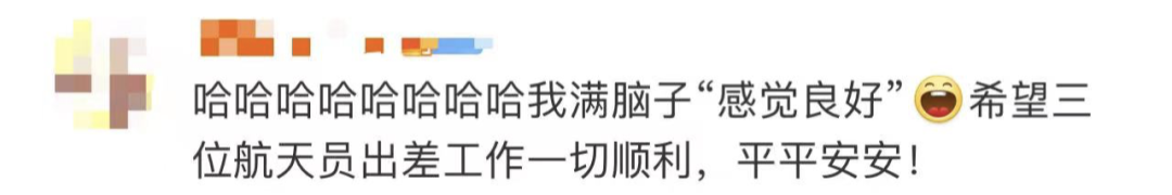 航天員們聲音平穩(wěn),地面控制中心傳來陣陣笑聲,網(wǎng)友們也開始跟著“感覺良好”
