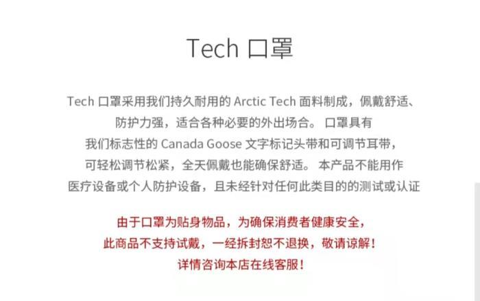 加拿大鵝官方精品店關于天價口罩的介紹。