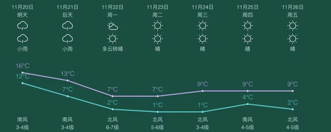 強(qiáng)冷空氣來臨前,20日(周六)會有分散性的陣雨出現(xiàn),不過,降雨量不大,持續(xù)時間也不長,對出行的影響不明顯。另外,周六的天氣還比較暖和 ,周末外出可以安排在這一天,因?yàn)橹苋眨?1日)降雨、大風(fēng)、降溫會相繼來襲。21日白天,有小雨光顧,預(yù)計(jì)主要出現(xiàn)在上午時段。下午隨著冷空氣的到來,降雨逐漸結(jié)束。22日是“小雪”節(jié)氣,22~23日,我市平度、萊西等北部部分地區(qū)會出現(xiàn)小陣雪,非常應(yīng)景。目前來看,降雪量不大,不會有積雪出現(xiàn)。