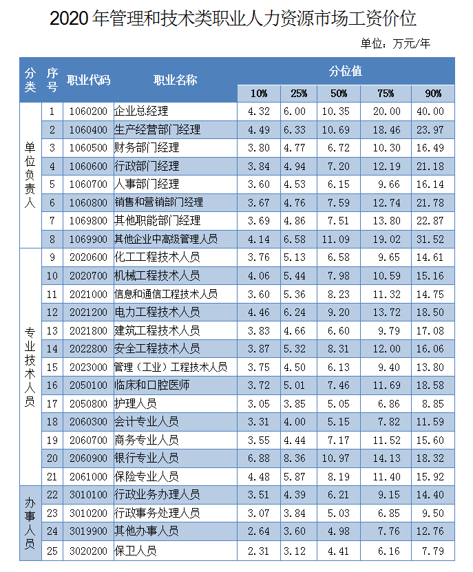 青島日報社/觀海新聞11月20日訊 11月19日,觀海新聞從“山東人社”微信公眾號獲悉,山東2020年人力資源市場工資價位發布。