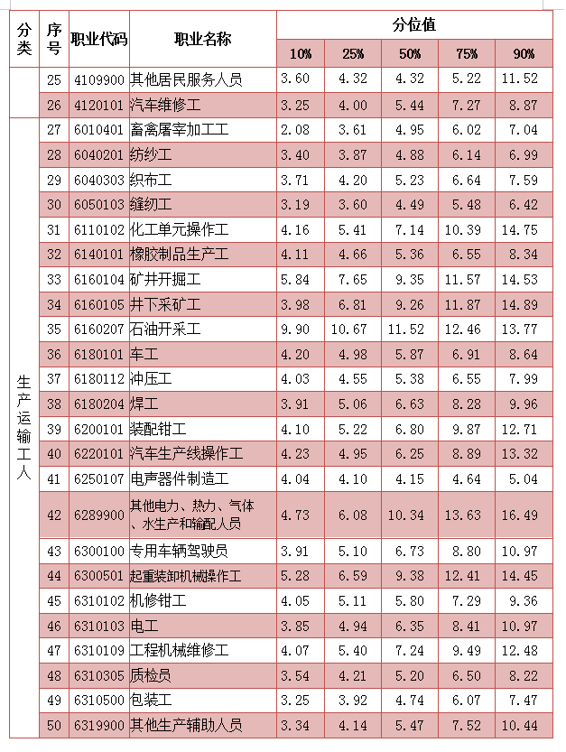 據悉,工資價位主要包括50個技能類職業、25個管理和專業技術類職業以及15個不同崗位等級人力資源市場工資價位數據。工資價位采取10%、25%、50%、75%、90%等5個分位值發布。分位值是指將數據由低到高排序,在數列中處于相應百分比位置的數據。它表示有相應比例的數據低于或等于該數值。