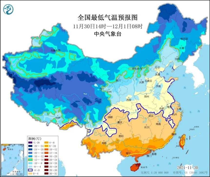 本次寒潮市區的最低氣溫出現在12月1日早晨,在1℃上下,內陸在-2℃左右。2日早晨,北部地區受輻射降溫影響,最低氣溫還會進一步降低。
