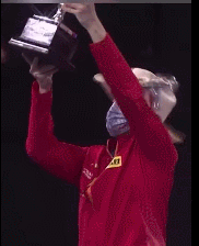 舉起獎杯時,他不小心把獎杯蓋子弄掉