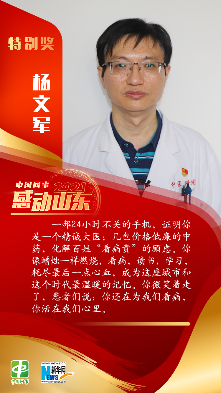 新華網濟南12月1日電(丁宇飛 耿曉涵)12月1日,“中國網事·感動山東”2021年度網絡人物評選頒獎典禮在濟南舉辦。楊文軍、李涌、馬明濤、馬德富、王少鵬、徐軍、張傳軍、邵本道、李德成、田象霞等十人獲評2021年度網絡人物。其中,楊文軍、李涌榮獲年度網絡人物特別獎。