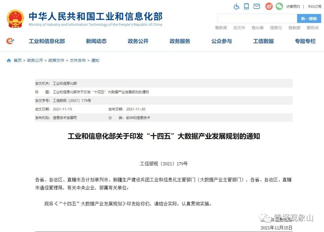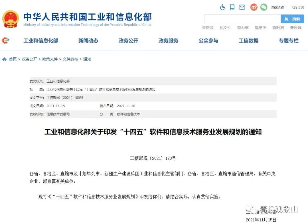 11月30日,工業和信息化部官方網站發布《“十四五”信息化和工業化深度融合發展規劃》《“十四五”軟件和信息技術服務業發展規劃》《“十四五”大數據產業發展規劃》三項規劃。當天上午,工業和信息化部舉行專題新聞發布會,分別對上述三項規劃進行解讀。