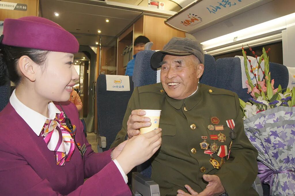 《革命老兵許家綏,體驗青榮城際高鐵首趟列車》 李蘇適