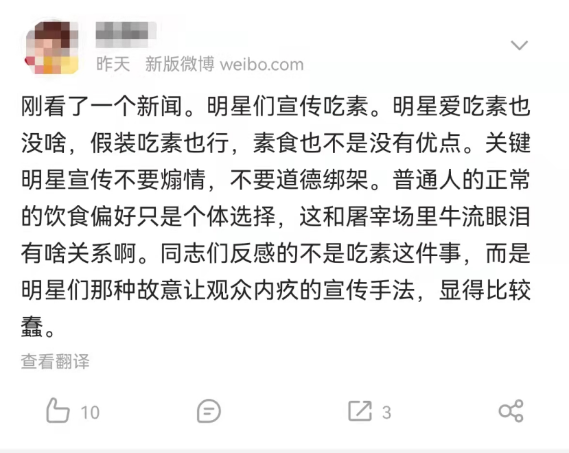 明星在宣傳片中明示暗示吃肉是殘忍的行為,