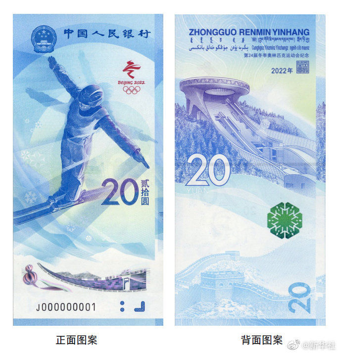 記者3日從中國人民銀行獲悉,人民銀行定于2021年12月21日發行第24屆冬季奧林匹克運動會紀念鈔一套,包括冰上運動項目紀念鈔和雪上運動項目紀念鈔各1張。冰上運動項目紀念鈔為塑料鈔,雪上運動項目紀念鈔為紙鈔。