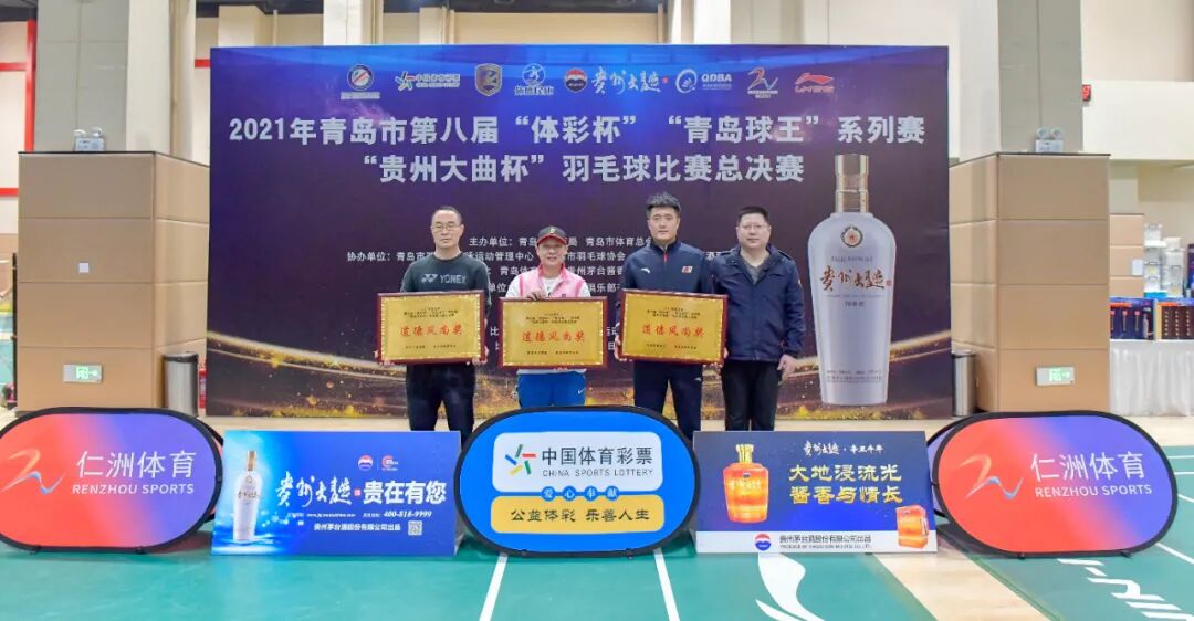 青島市體育局黨組成員、青島市體育總會專職副主席李國利,山東省羽毛球運動協會副會長、青島市羽毛球協會會長、青島仁洲控股集團董事長于海波,貴州茅臺醬香酒營銷有限公司山東二區張南南頒獎