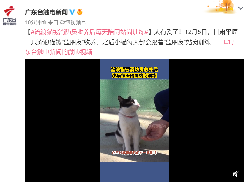 之后小貓每天都會跟著“藍朋友”站崗訓練!