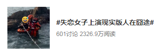 #一失戀女子上演現實版人在囧途#話題沖上了熱搜。