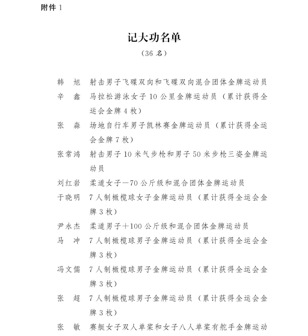 各市人民政府,省政府各部門、各直屬機構,各大企業(yè),各高等院校:在舉國關注的第十四屆全國運動會上,我省體育健兒肩負全省人民的殷切期望,繼東京奧運會之后連續(xù)作戰(zhàn)、再創(chuàng)佳績,勇奪58枚金牌、55枚銀牌、47枚銅牌,實現(xiàn)全運會金牌“四連冠”,并獲得體育道德風尚獎,取得運動成績和精神文明雙豐收,充分展現(xiàn)了齊魯兒女奮發(fā)向上、追求卓越的精神風貌,充分展現(xiàn)了山東經(jīng)濟社會發(fā)展的巨大成就,為全省人民贏得了巨大榮譽,給全省人民帶來了巨大鼓舞,增添了奮進力量。為激勵先進、樹立榜樣,大力弘揚奧林匹克精神和中華體育精神,經(jīng)研究決定,給予作出杰出貢獻的韓旭等36名同志記大功;給予作出突出貢獻的山東省射擊自行車運動管理中心等22個單位通報表揚。希望受到表揚獎勵的集體和個人充分發(fā)揮表率作用,戒驕戒躁,再接再厲,再創(chuàng)佳績,贏得更多榮譽。各級、各部門要堅持以習近平新時代中國特色社會主義思想為指導,全面貫徹黨的十九大和十九屆二中、三中、四中、五中、六中全會精神,以受表揚獎勵的集體和個人為榜樣,堅持以人民為中心的發(fā)展思想,全面推進群眾體育、競技體育、體育產(chǎn)業(yè)、體育文化協(xié)調發(fā)展,不斷加快體育強省建設步伐,為新時代社會主義現(xiàn)代化強省建設作出新的更大貢獻。