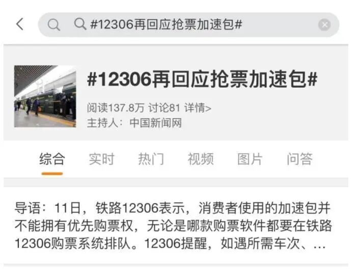 搶票過程中,使用加速包真的有用嗎?對此,鐵路12306表示,消費者使用的加速包并不能擁有優先購票權,無論是哪款購票軟件都要在鐵路12306購票系統排隊。12306提醒,如遇所需車次、席別無票,可在線排隊候補。當對應的車次、席別有退票時,系統將自動購買車票。