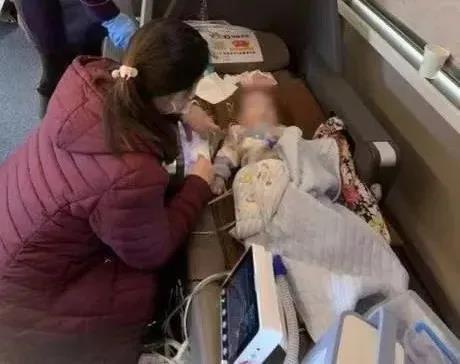 患兒父親 劉奎琛:可能高鐵比較顛,出現了兩次心率達到180、190。頭頂一直不停地冒汗,隨時都有可能心力衰竭吧。