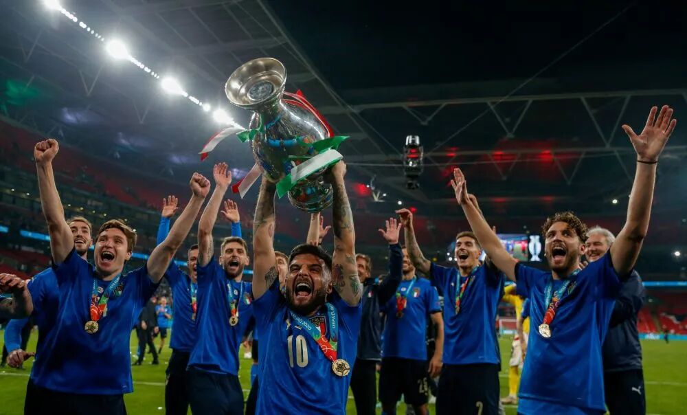 7月11日,意大利男足在歐錦賽決賽中經過點球大戰,總比分4:3擊敗英格蘭隊,七戰全勝捧起歐錦賽冠軍獎杯。這是意大利隊繼1968年之后,時隔53年再次奪得歐錦賽冠軍。