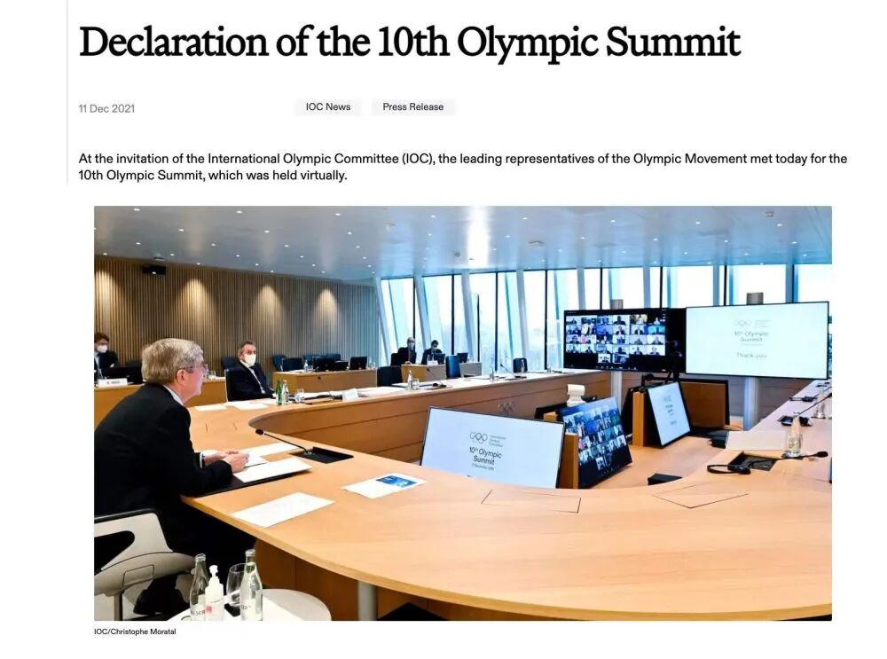 12月11日,國際奧委會以視頻方式召開第10屆奧林匹克峰會。峰會發表宣言,堅決反對將奧林匹克運動和體育政治化的行為。宣言還歡迎第76屆聯大協商一致通過的由173個國家共提的奧林匹克休戰決議,體現了聯合國會員國對北京冬奧會的大力支持。