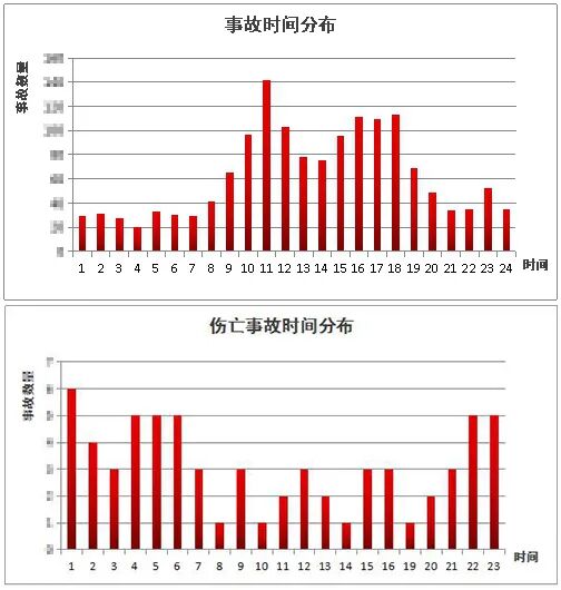 (4)事故風險分析車多時段易發事故。據往年高速公路交通事故數據顯示,事故高發時段一般在11時左右、15時至18時,事故總量變化與整體流量趨勢相吻合,飽和度越高,事故越多,而傷亡事故高發則主要集中在凌晨前后。通過對車流量及大型車輛占比分析后發現,大型車輛在占比35%左右時,車損事故高發;當流量整體比較低,但大車占比超過60%時,傷亡事故高發。
