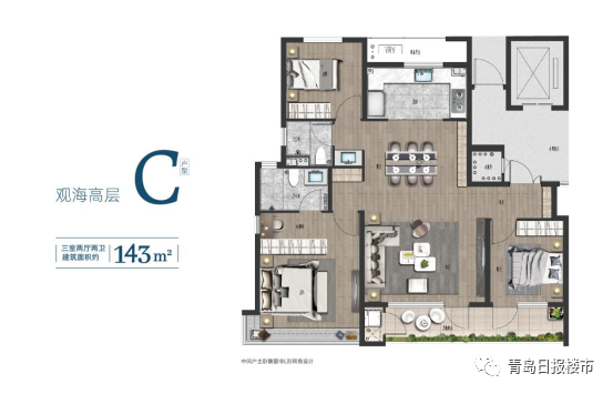 戶型方正舒闊、南北通透,全能三房設計,多功能空間的優化布局,可以容納居者的多樣生活。一體化餐、客廳,為生活帶來無限自在空間。雙景觀陽臺,縱覽四時風光。主臥觀景飄窗,海居詩意時光自此悠然悅享。
