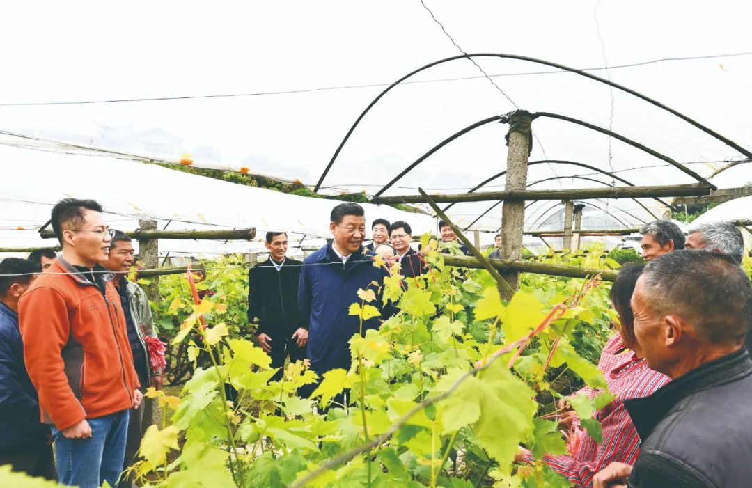 2021年4月25日上午,習近平在廣西桂林市全州縣才灣鎮毛竹山村,走進葡萄種植園,同農技人員和村民親切交流。 新華社記者 謝環馳攝