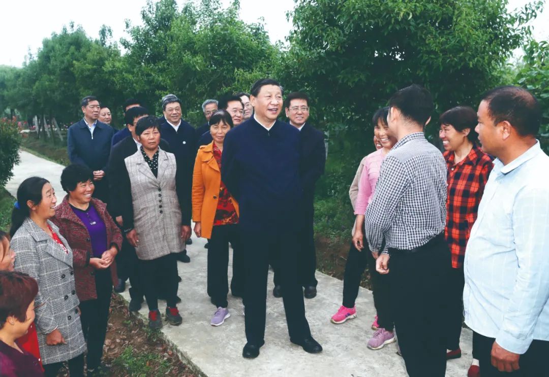 2021年5月13日,習近平在河南南陽市淅川縣九重鎮鄒莊村考察利用南水北調移民村產業發展資金建立起來的丹江綠色果蔬園基地,同村民親切交流。 新華社記者 王曄攝